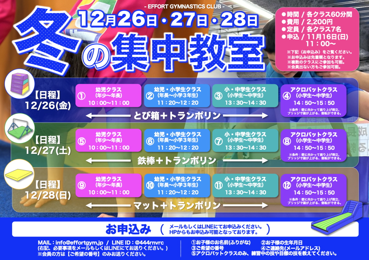 【幼児クラス〜小・中学生クラス】は、日ごとに種目が違うので集中的に練習することができます🔥🔥